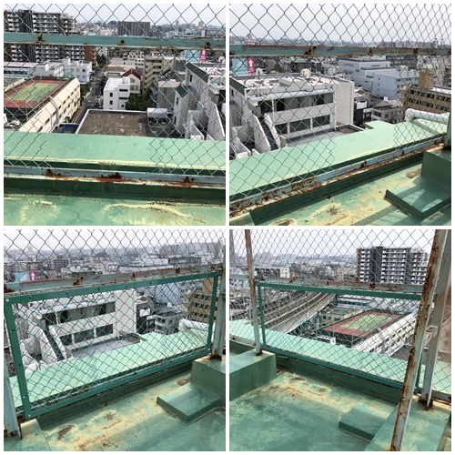 板橋区 ○○倉庫 屋上ネット フェンス補修工事